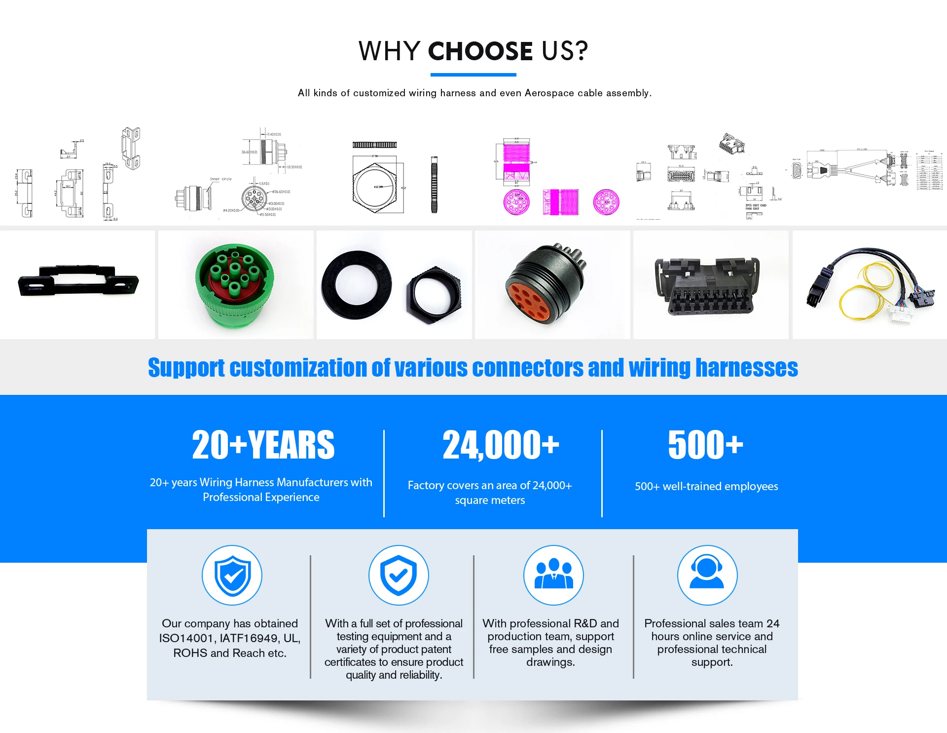 Produk utama: Harnes kabel diagnostik otomotif, kabel OBDII & j1944, kabel FAKRA, konektor & Terminal, antena GPS
